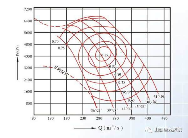 礦用短軸主扇風(fēng)機(jī)采用的是跟歐美同步的三元流流體力學(xué)技術(shù),一對(duì)一量體裁衣式設(shè)計(jì)葉型,風(fēng)機(jī)高效范圍寬廣,高效率點(diǎn)可以達(dá)到89%,80%的高效區(qū)域可占風(fēng)機(jī)性能有效范圍(風(fēng)機(jī)性能的有效范圍為風(fēng)機(jī)性能曲線的60%左右)的45%左右,特別適用于礦井通風(fēng)容易時(shí)期與困難時(shí)期的大跨度需求。