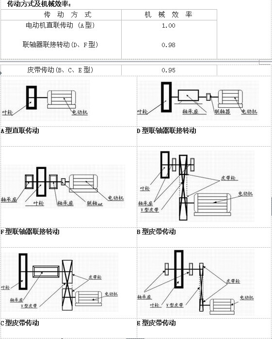 注:0.8是風機效率,是一個變數,0.98是一個機械效率也是一個變數(A型為1,D、F型為0.98,C、B型為0.95)